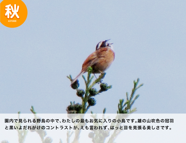 平成13年10月から、継続的に園内の野鳥の観察を行い、その観察日数は2200日を超えました。この9年間で確認した野鳥は、上空を飛翔しているものも含めると101種に上ります。ここまで観察を続けてこられたのには、いくつかの理由があります。